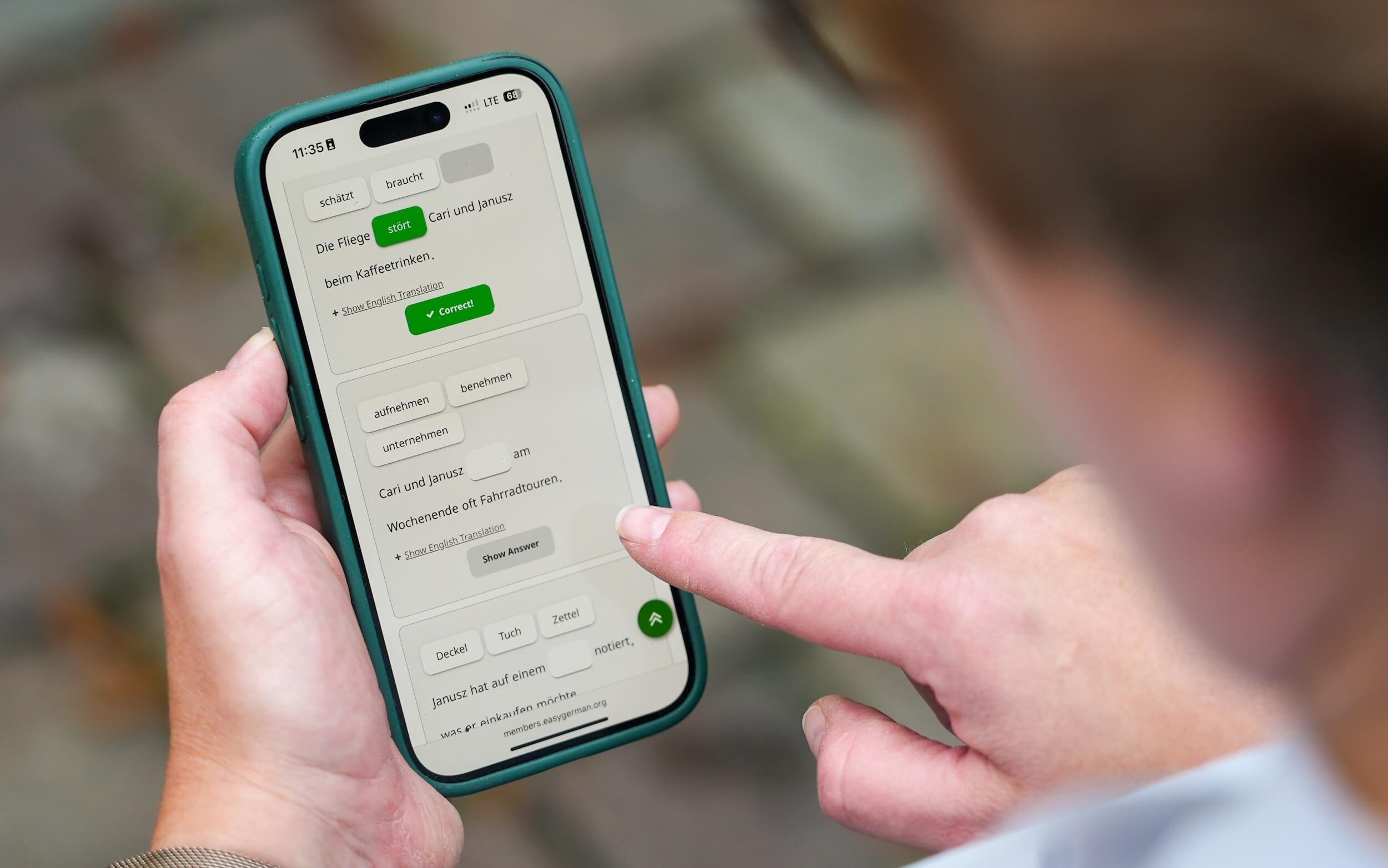 Understand real German, as spoken among friends, with our interactive podcast transcripts and our podcast vocab helper.